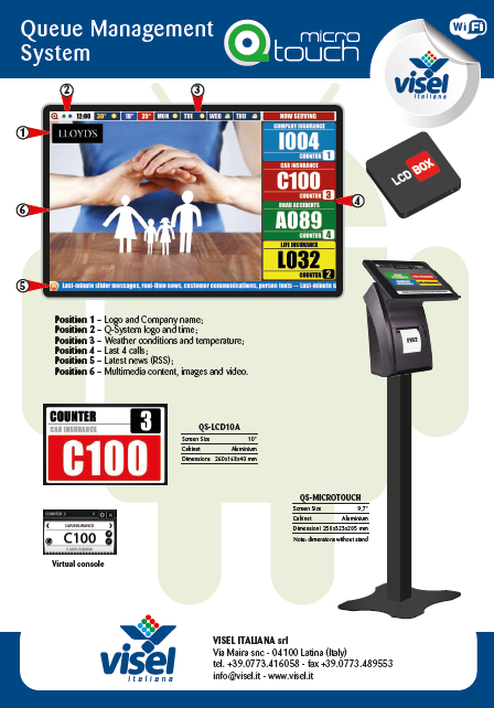 כך מה שפעם היה "סתם" ניהול תורים הופך גם לכלי פרסום ושיווק יעיל שיכול לבדר את דחיפת הלקוחות לעידוד מיידי ברכישה. אתה צריך להבדיל את הקוד? אל תפחד, Q-Retail תומך בעד שני שירותים שונים והמספור ניתן לניהול באמצעות קונסולת Q-Retail (Windows Virtual Console), QS-KEYPAD (לוח המקשים האלחוטי) או ה- QS-WCONS החדש (מפעיל ספסל WiFi של קונסולות).