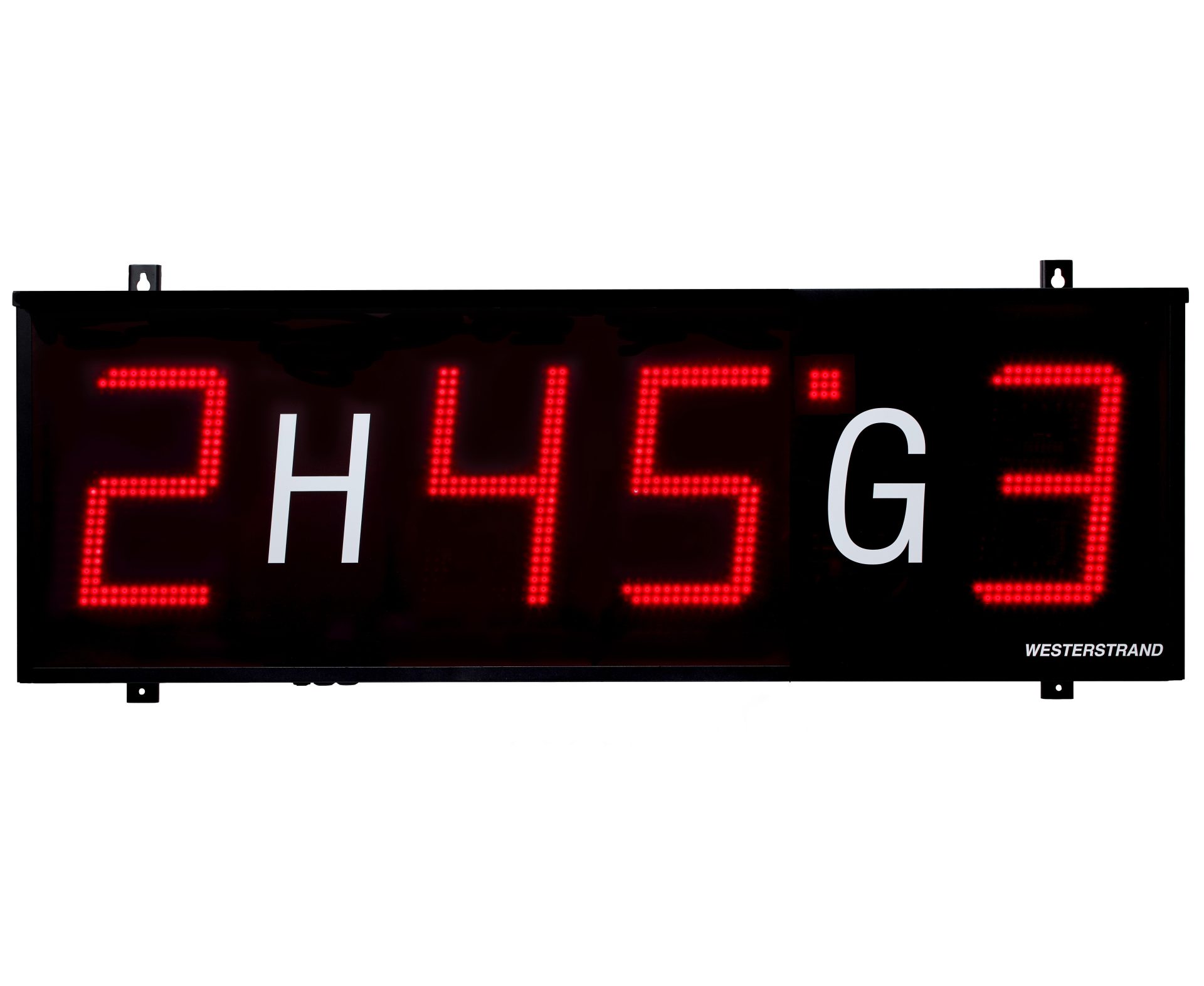 Scoreboard with LED digits in SMD technology. Its design makes it suitable for e.g. soccer and rugby. The board is operated via a wireless remote unit.