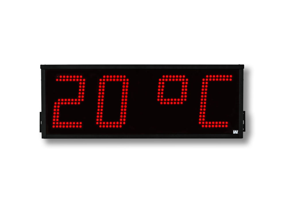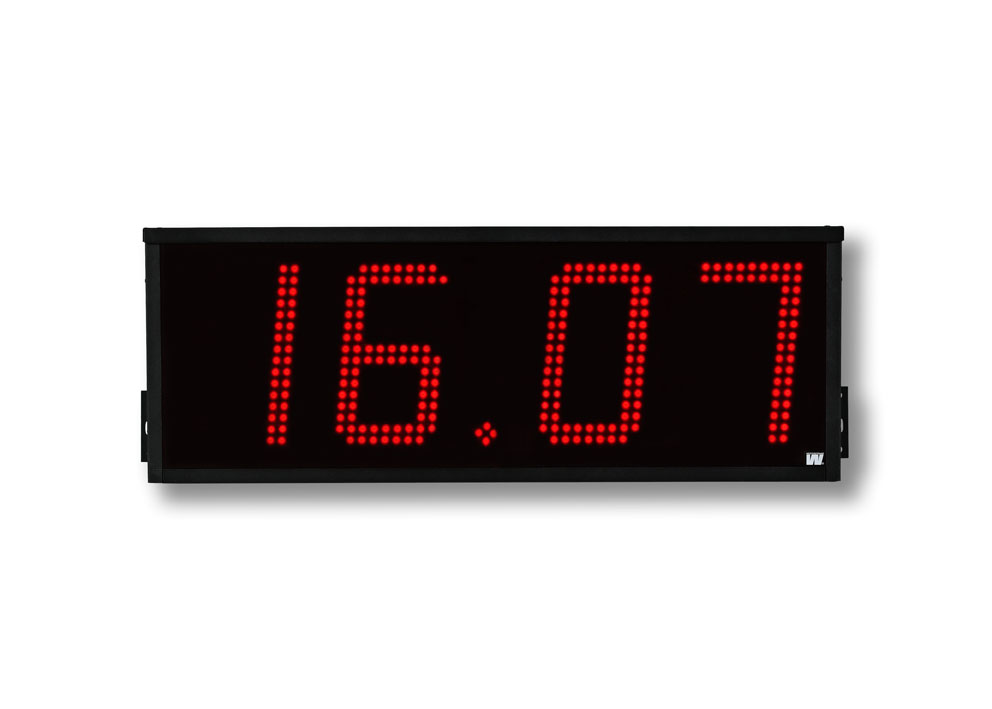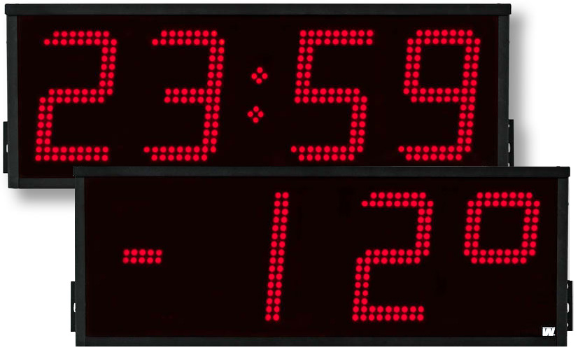 שעון דיגיטלי לשימוש פנימי עם מארז אלומיניום צבוע שחור וחזית פוליקרבונט. זמין עם נוריות LED אדום, .